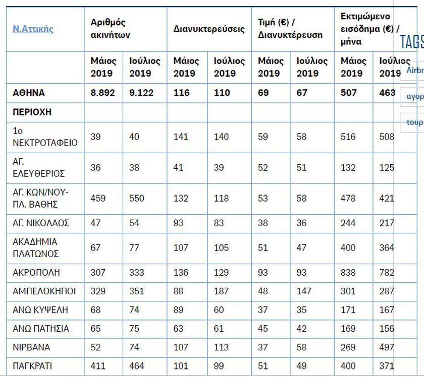 Νέες έρευνες που έχουν δει το φώς της δημοσιότητας αναφέρουν ότι έχει παρατηρηθεί αισθητή πτώση των τιμών των ακινήτων που προσφέρονται για ενοικίαση στην πλατφόρμα της AIRBNB. Ο λόγος για αυτήν την πτώση είναι ότι έχουν προστεθεί πολλά ακίνητα προς ενοικίαση σε πολλές περιοχές της Αττικής, μειώνοντας έτσι τα έσοδα των ιδιοκτητών.